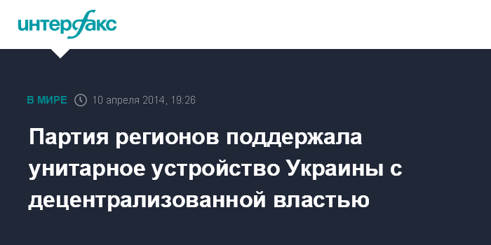 Партия регионов поддержала унитарное устройство Украины с децентрализованной властью