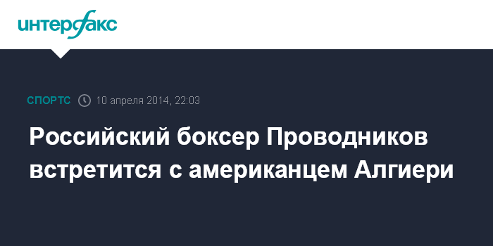 Москва. 10 апреля. INTERFAX.RU - Чемпион мира по версии WBO в весовой категории до 63,5 кг Руслан Проводников 14 июня встретится с американцем Крисом Алгиери, сообщает World Boxing News.