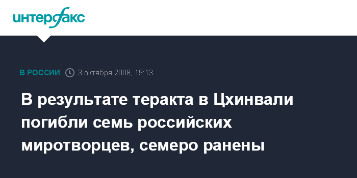 В результате теракта в Цхинвали погибли семь российских миротворцев, семеро ранены