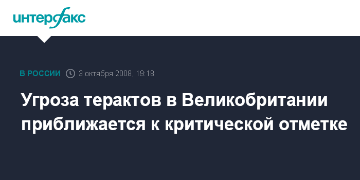Москва. 3 октября. INTERFAX.RU - Террористическая угроза в Великобритании приближается к критической отметке ввиду роста активности экстремистов "Аль-Каиды", сообщает в пятницу газета Daily Telegraph.