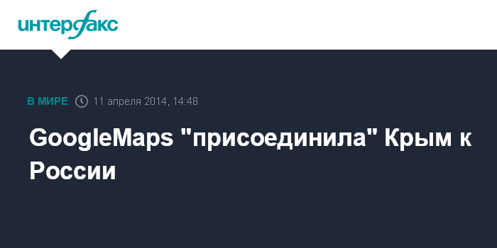 Москва. 11 апреля. INTERFAX.RU - Google изменила на своем картографическом сервисе Google Maps государственные границы России и Украины - при заходе на сервис соответствующее обозначение госграницы отделяет территорию полуострова Крым от территории Украины.