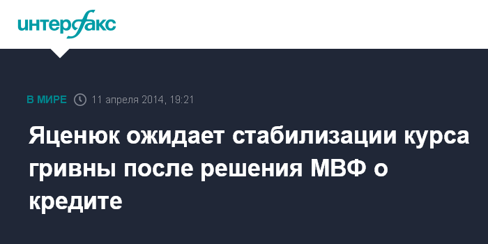 Киев. 11 апреля. INTERFAX.RU - Девальвация гривны связана с действиями России, связанными с неми протестами на юго-востоке и недостатком золотовалютных резервов, однако ожидаемое скорое решение МВФ о выделении финансовой помощи Украине стабилизирует курс, заявил глава украинского правительства Арсений Яценюк.