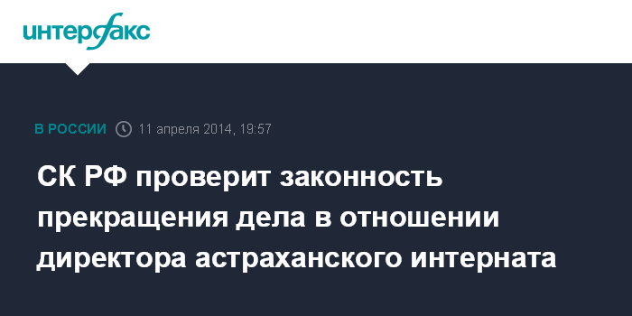 СК РФ проверит законность прекращения дела в отношении директора астраханского интерната