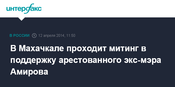 Москва. 12 апреля. INTERFAX.RU - Несколько сотен сторонников отстраненного от должности мэра Махачкалы Саида Амирова организовали в субботу несанкционированный митинг на перекрестке проспекта Шамиля и улицы Ярагского в Махачкале, перекрыв движение, сообщили агентству "Интерфакс-Юг" в пресс-службе МВД по Дагестану.
