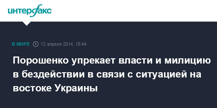 Порошенко упрекает власти и милицию в бездействии в связи с ситуацией на востоке Украины