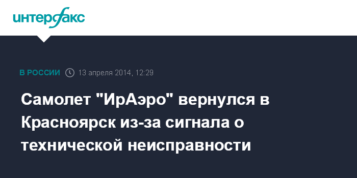 Самолет "ИрАэро" вернулся в Красноярск из-за сигнала о технической неисправности