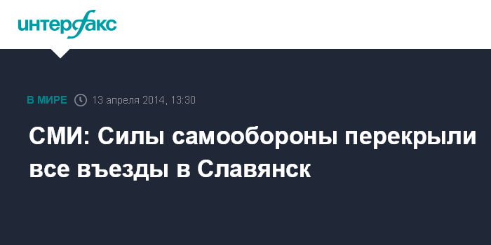 СМИ: Силы самообороны перекрыли все въезды в Славянск