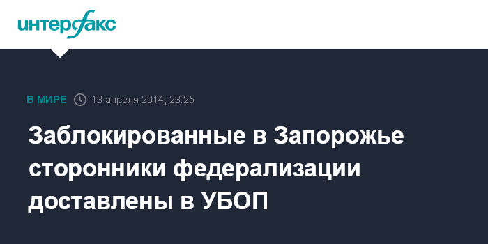 Запорожье. 13 апреля. ИНТЕРФАКС-УКРАИНА - Сотрудники правоохранительных органов под охраной сопроводили группу сторонников федерализации Украины в Запорожье к зданию Управления по борьбе с организованной преступностью МВД Украины в области.