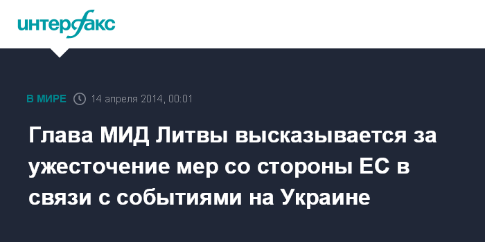Глава МИД Литвы высказывается за ужесточение мер со стороны ЕС в связи с событиями на Украине