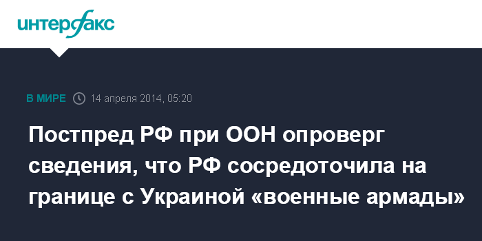 "Хватит распространять небылицы о том, что мы скопили армады военных на границе с этой страной, готовых вот-вот, за несколько часов дойти чуть ли не до Ла-Манша... Что мы заслали полчища агентов, координирующих действия протестующих жителей Украины", - сказал В.Чуркин на заседаии Совбеза ООН.
