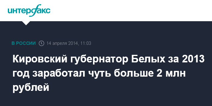Кировский губернатор Белых за 2013 год заработал чуть больше 2 млн рублей