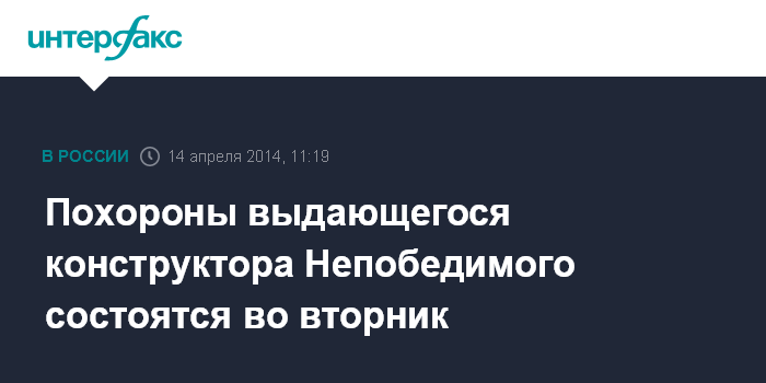Похороны выдающегося конструктора Непобедимого состоятся во вторник