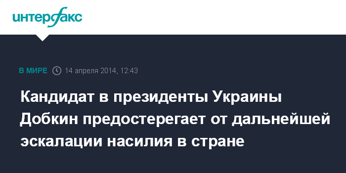 Кандидат в президенты Украины Добкин предостерегает от дальнейшей эскалации насилия в стране