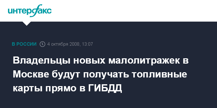 Москва. 4 октября. INTERFAX.RU - Мэр Москвы Юрий Лужков принял решение о выдаче карт на получение бесплатного бензина владельцам новых малолитражек прямо в регистрационных отделениях ГИБДД.