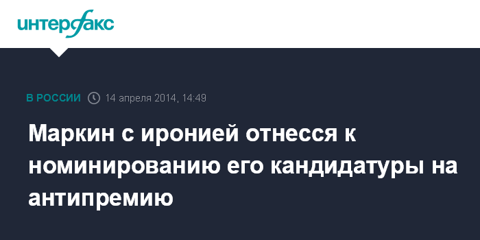 Маркин с иронией отнесся к номинированию его кандидатуры на антипремию