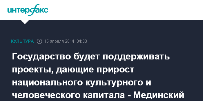 Государство будет поддерживать проекты, дающие прирост национального культурного и человеческого капитала - Мединский