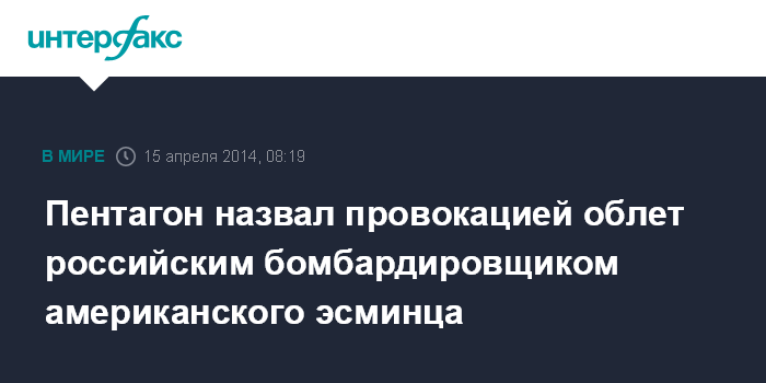 Вашингтон. 15 апреля. INTERFAX.RU - Пентагон в понедельник выступил с официальным комментарием относительно информации о якобы имевших место маневрах российского истребителя-бомбардировщика Су-24 вблизи американского эсминца "Дональд Кук".