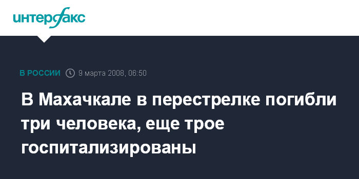 Ростов-на-Дону. 9 марта. ИНТРЕФАКС-ЮГ - Трое человек были ранены и трое убиты в результате массовой драки, перешедшей в перестрелку в Махачкале.
