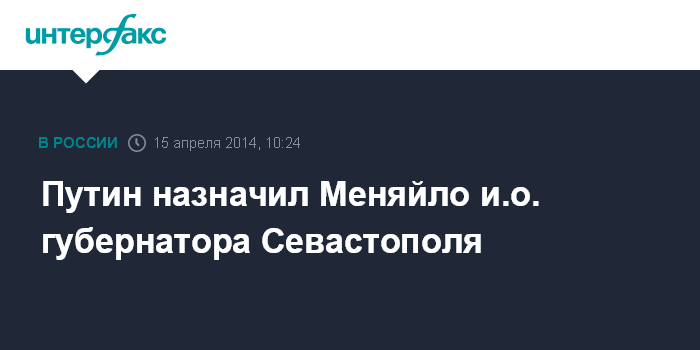 Москва. 15 апреля. INTERFAX.RU - Президент РФ Владимир Путин подписал указ о назначении Сергея Меняйло и.о. губернатора Севастополя, сообщает сайт Кремля.