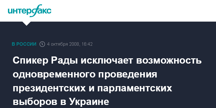 Москва. 4 октября. INTERFAX.RU - Председатель Верховной Рады Украины Арсений Яценюк исключает возможность одновременного проведения досрочных выборов в парламент, а также выборов президента.