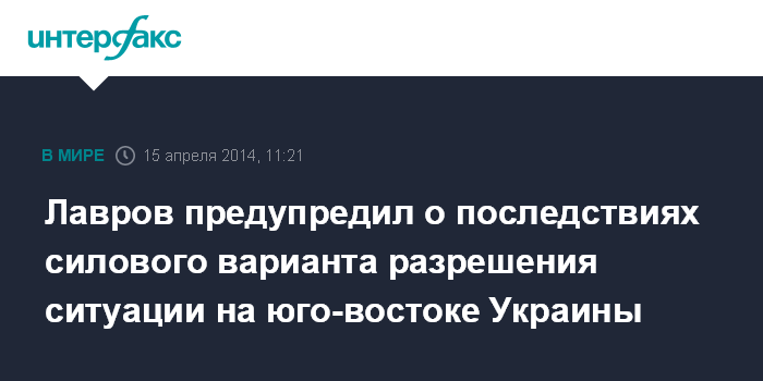 Лавров предупредил о последствиях силового варианта разрешения ситуации на юго-востоке Украины