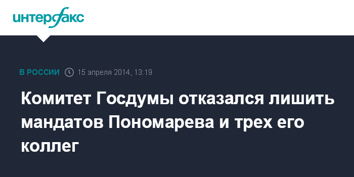 Москва. 15 апреля. INTERFAX.RU - Комитет Госдумы по регламенту во вторник вернул фракции ЛДПР на доработку проект постановления о лишении депутатских мандатов Ильи Пономарева, Дмитрия Гудкова, Валерия Зубова и Сергея Петрова за их позицию по вопросу о воссоединении Крыма с РФ.