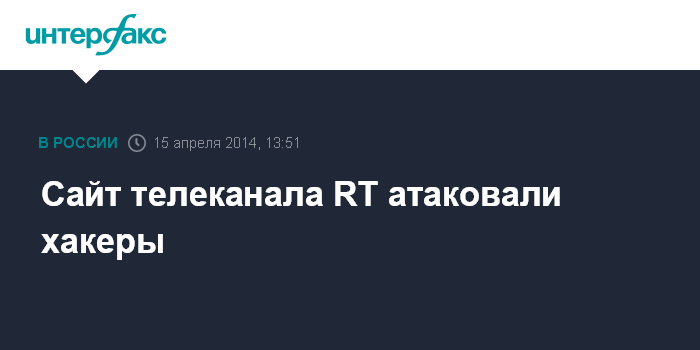 Москва. 15 апреля. INTERFAX.RU - Русскоязычная версия сайта телеканала RT недоступна из-за DDoS-атаки.