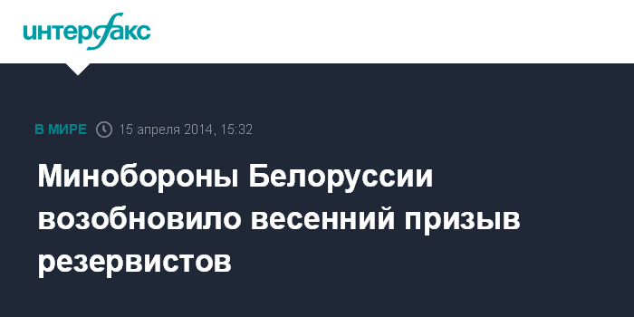 Москва. 15 апреля. INTERFAX.RU - Министерство обороны Белоруссии приняло решение возобновить весенние призывы на службу в резерве.