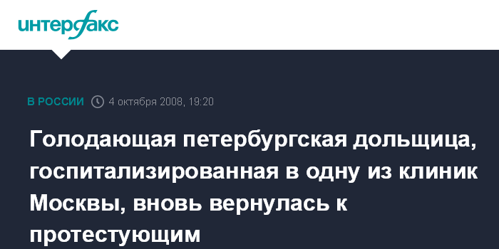Голодающая петербургская дольщица, госпитализированная в одну из клиник Москвы, вновь вернулась к протестующим