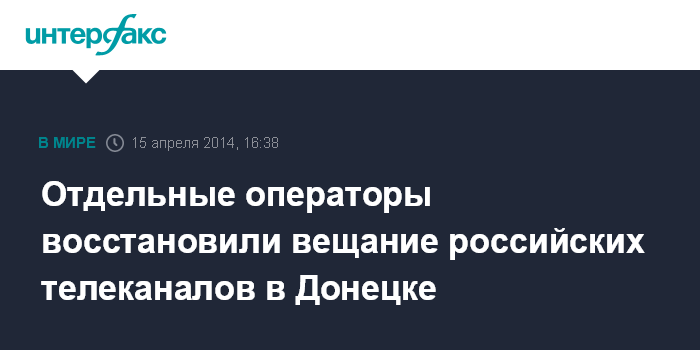 Москва. 15 апреля. INTERFAX.RU - В Донецке некоторые кабельные операторы возобновили вещание российских телеканалов в полном объеме.
