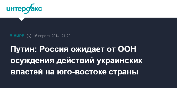 Путин: Россия ожидает от ООН осуждения действий украинских властей на юго-востоке страны
