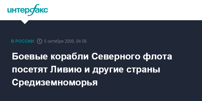 Боевые корабли Северного флота посетят Ливию и другие страны Средиземноморья