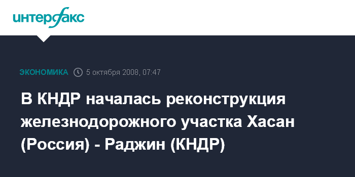 В КНДР началась реконструкция железнодорожного участка Хасан (Россия) - Раджин (КНДР)