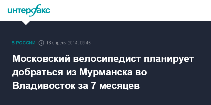 "Добраться до Владивостока планирую за семь месяцев, мне надо прибыть туда в ноябре, до наступления холодов", - сообщил "Интерфаксу" путешественник.