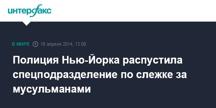 Вашингтон. 16 апреля. INTERFAX.RU - Департамент полиции Нью-Йорка объявил о прекращении работы подразделения, занимавшегося наблюдением за исламской общиной города, пишет американское издание New York Times.