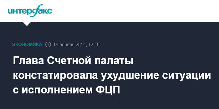 "В первом квартале 2014 года ситуация с исполнением ФЦП ухудшилась по сравнению с соответствующим периодом 2013 года. Показатели кассового исполнения по расходам в рамках ФЦП за первый квартал 2014 года составили 11% годовых бюджетных назначений против 12,2% в первом квартале 2013 года", - отметила Голикова.