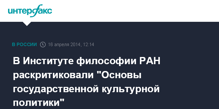 В Институте философии РАН раскритиковали "Основы государственной культурной политики"