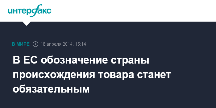Москва. 16 апреля. INTERFAX.RU - В ЕС обозначение страны происхождения товара станет обязательным