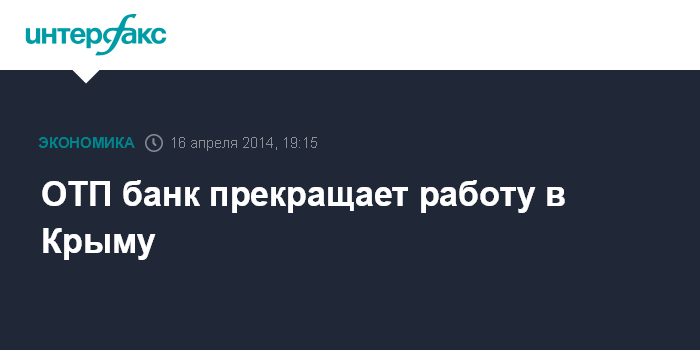 "Ввиду невозможности продолжать дальнейшую банковскую деятельность на территории АР Крым руководство АО "ОТП Банк" приняло решение с 18 апреля 2014 года прекратить деятельность отделений банка в регионе", - говорится в сообщении кредитной организации.