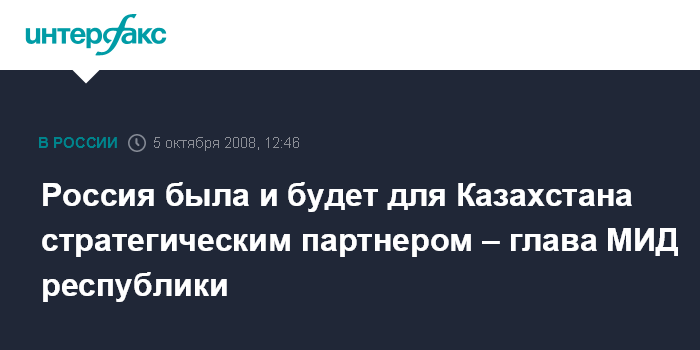 Астана. 5 октября. INTERFAX.RU - Глава МИД Казахстана Марат Тажин заявил, что республика и впредь будет строить свои отношения с Россией на основе стратегического партнерства.
