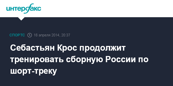 Москва. 16 апреля. INTERFAX.RU - Президент Союза конькобежцев России Алексей Кравцов заявил о том, что главный тренер сборной страны по шорт-треку Себастьян Крос продолжит работу на своем посту.