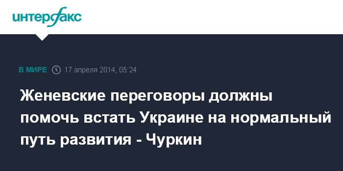 Женевские переговоры должны помочь встать Украине на нормальный путь развития - Чуркин