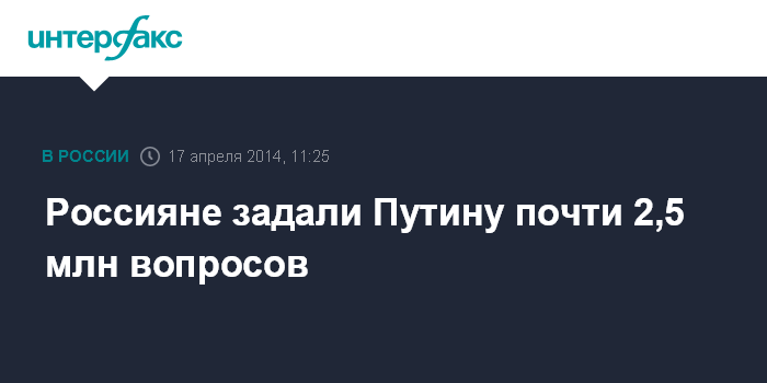 Москва. 17 апреля. INTERFAX.RU - Меньше чем за час до начала "Прямой линии с Владимиром Путиным" президенту РФ поступило около 2,5 млн вопросов.