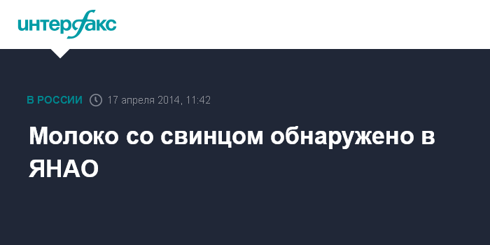 Москва. 17 апреля. INTERFAX.RU - Управление Роспотребнадзора по Ямало-Ненецкому автономному округу приостановило реализацию партии молока, в которой обнаружено превышение предельно-допустимого содержания свинца, в городе Надым и Надымском районе.
