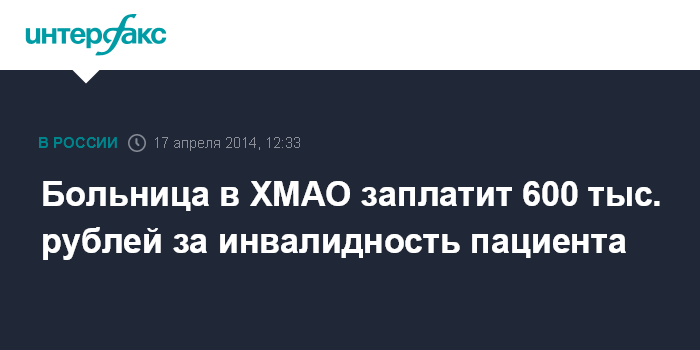 Больница в ХМАО заплатит 600 тыс. рублей за инвалидность пациента