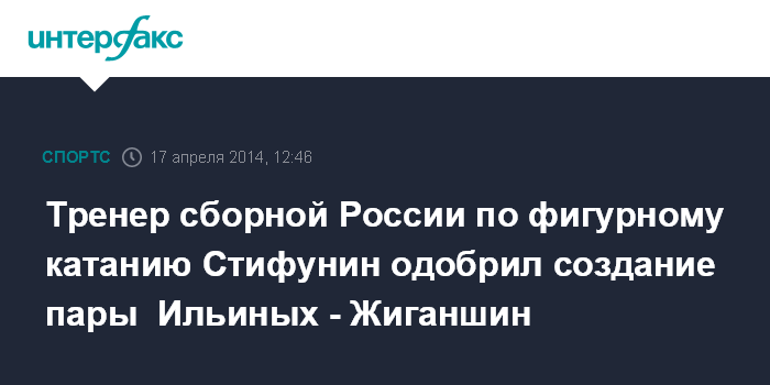Тренер сборной России по фигурному катанию Стифунин одобрил создание пары Ильиных - Жиганшин