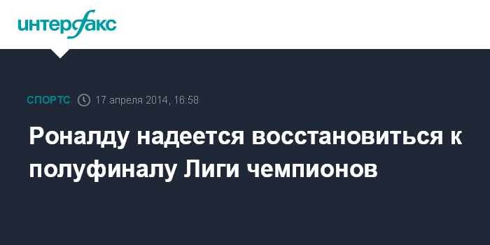 Москва. 17 апреля. INTERFAX.RU - Лидер мадридского "Реала" Криштиану Роналду заявил, что восстановление после полученной травмы проходит успешно, но он пока не готов назвать дату возвращения на поле.
