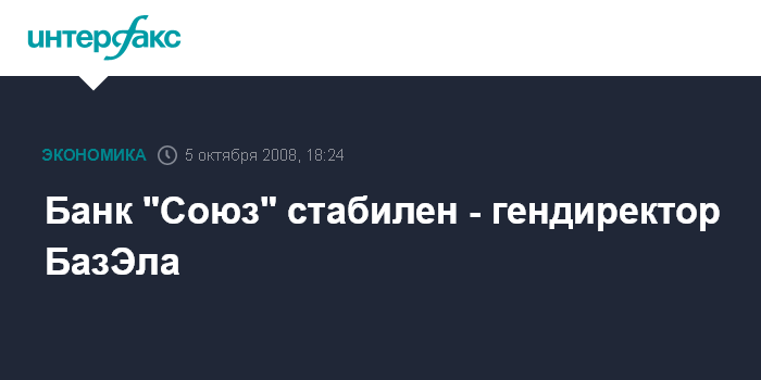 "Потребуется значительное время, чтобы банки восстановили друг к другу доверие. "Базовый Элемент" предоставил определенную ликвидность банку "Союз", так как главная задача банка - своевременно выполнять обязательства перед вкладчиками и он с ней справляется. Будет ли банк давать кредиты? Завтра - нет, потом - да. Я думаю, после кризиса в России останется меньше банков, но это будут хорошие банки, и "Союз" к ним относится", - сказала Г.Молдажанова.