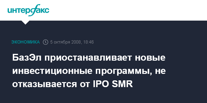 БазЭл приостанавливает новые инвестиционные программы, не отказывается от IPO SMR