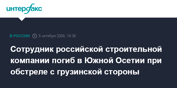 Сотрудник российской строительной компании погиб в Южной Осетии при обстреле с грузинской стороны